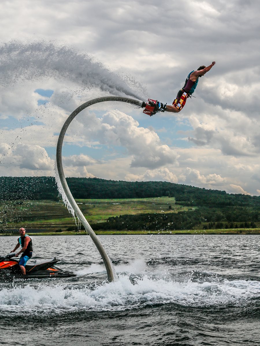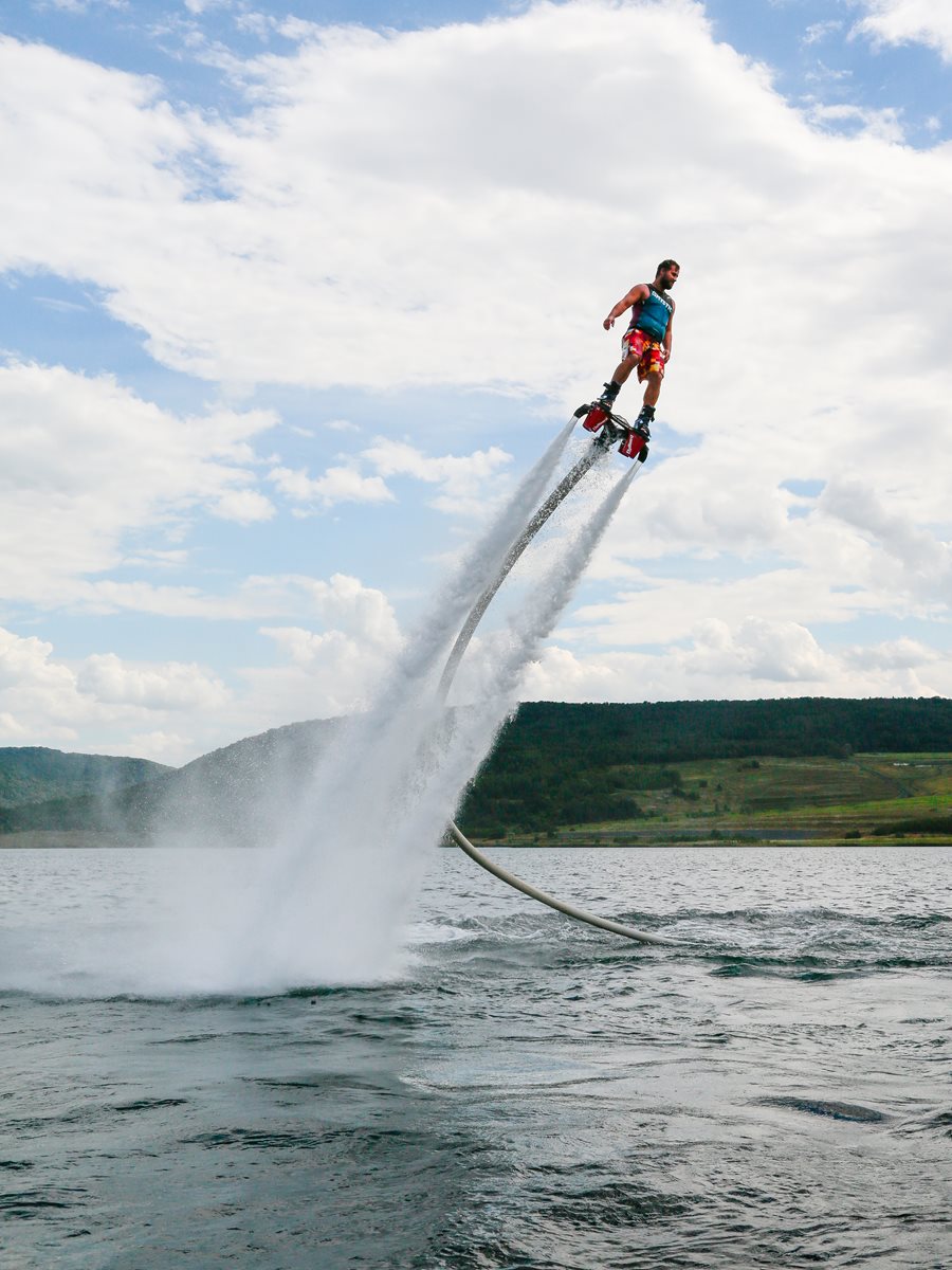 Flyboard je stále novinkou ve světě vodních sportů! Zkušení instruktoři Vás proškolí, navléknou tryskové boty a jde se na to.... díky flyboardu vzlétnete až do výšky 9 metrů a zažijete, jaké je to být superhrdina, kopírujte skoky delfínů, nebo zkuste akrobatické triky.