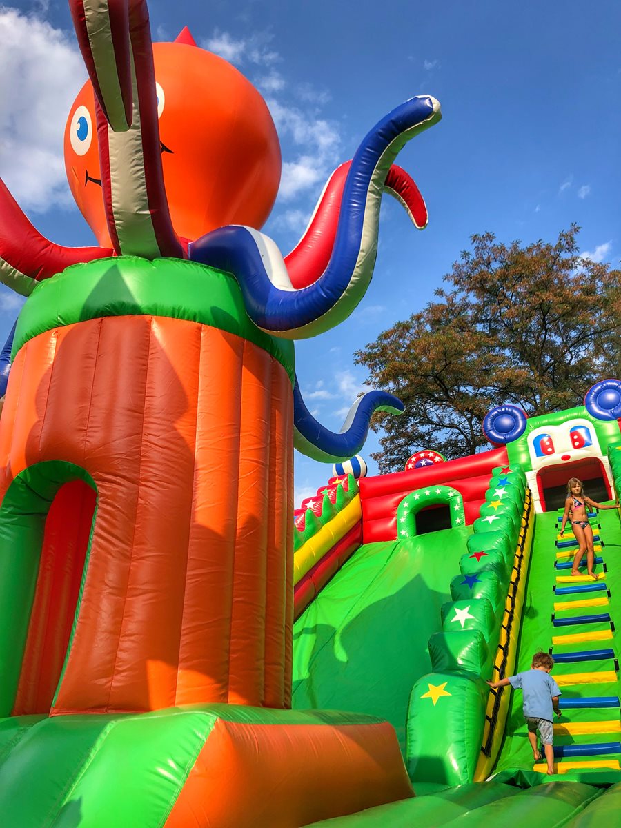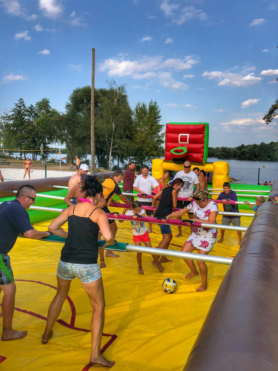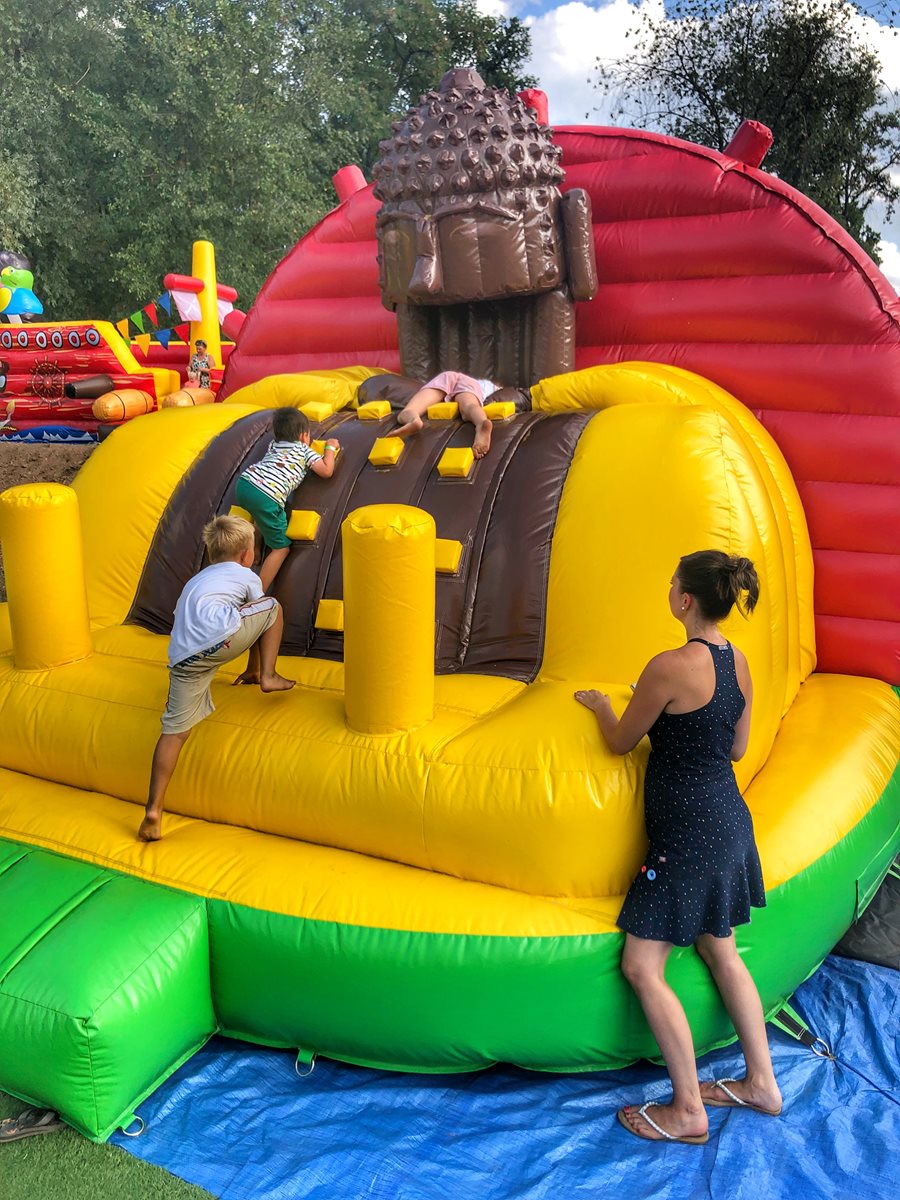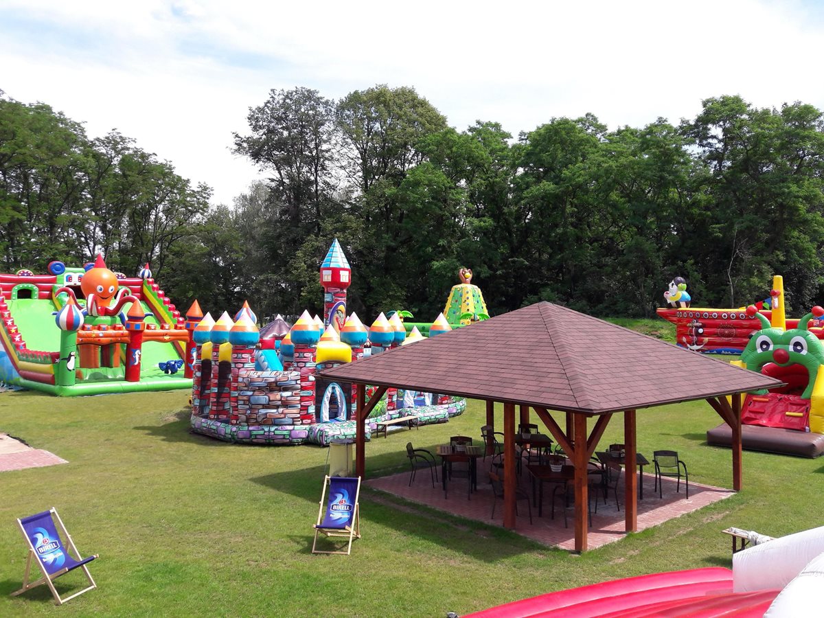 V nafukovacím ráji najde zábavu celá rodina – malé děti, větší děti i dospělí. Nafukovací ráj se momentálně skládá z 10 větších či menších nafukovacích atrakcí. Součástí areálu je moderní posezení pod dřevěnou pergolou. Využít můžete pár desítek metrů vzdáleného občerstvení.