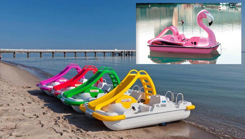 V naší flotile naleznete moderní modely H2O a Flamingo - obě šlapadla se skluzavkou.